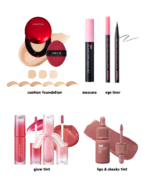 (Cushion Foundation – Mascara – Eyeliner – Lip Glow – Lip & cheek tint)