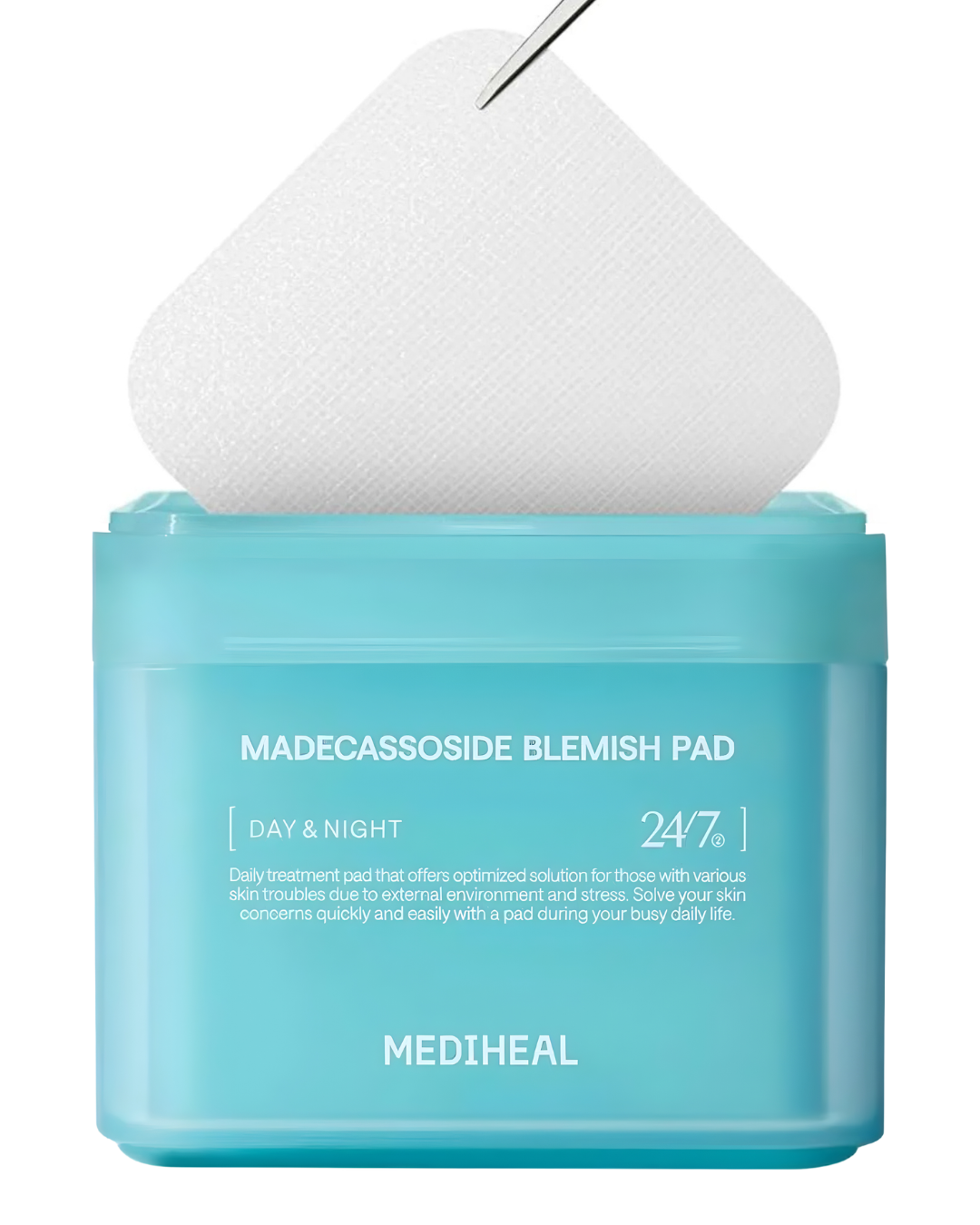 Τα Mediheal Madecassoside Blemish Pads είναι εμποτισμένα toner pads σχεδιασμένα για να καταπραΰνουν την επιδερμίδα και να βοηθούν στη βελτίωση της εμφάνισης ατελειών και ερυθρότητας. Με βασικό συστατικό το Madecassoside, ένα ενεργό συστατικό που προέρχεται από την Centella Asiatica, τα pads συμβάλλουν στην ηρεμία της επιδερμίδας και στην ενίσχυση του επιδερμικού φραγμού.